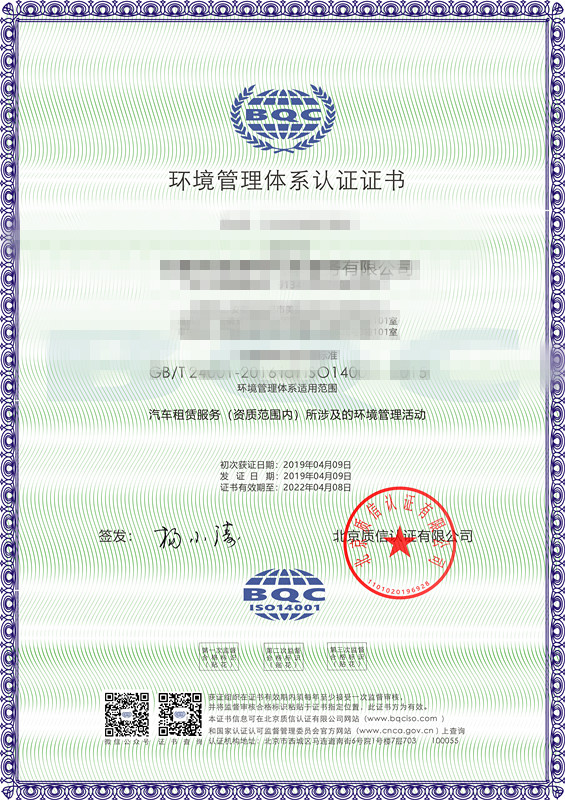• 汽車行業ISO三體系認證證書