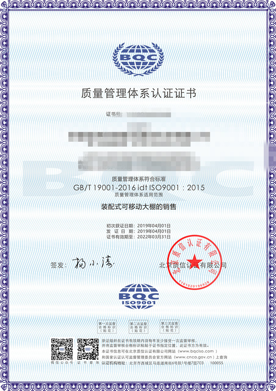 • 物業公司ISO三體系認證認證證書