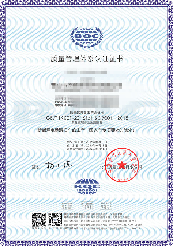 • 安全檢測ISO質量管理體系認證證書