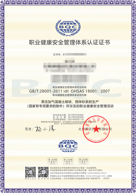 北京質信認證是國家認證認可監督管理委員會批準(批準號:CNCA-R-2017-313)的獨立公正的三方審核認證機構,可從事ISO9001質量管理體系認證、ISO14001環境管理體系認證、ISO45001職業健康安全管理體系認證,頒發相應的認證證書。質信認證由我國認證界資深從業人士發起設立,目標是成為一家國際領先民族認證品牌,在扁平化的全球競爭中,不斷發展壯大自己,有力地服務于各類組織。